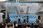 名古屋市上下水道局は15日、同市東区のオアシス21で、水道給水開始100周年・水道歴史写真展オープニングセレモニーを開いた。名古屋市の水道が今年で給水開始100周年を迎えることから、同局は今年1年を通じて様々な関連事業の展開を予定している。今回のセレモニーはその第一弾として、給水開始100周年を祝うとともに、100周年事業の一環である、名古屋市の水道の歩みを象徴する写真を展示する水道歴史写真展を記念して開催した。セレモニーでは、河村たかし・名古屋市長があいさつ。さらに、くす玉開きや三味線・和太鼓のミニライブ、水道に関するクイズ大会を行い、250人の市民らが集まった会場は大いに盛り上がった。